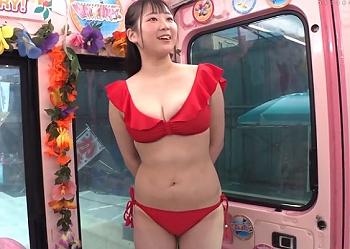 [ずらしハメ]【マッサージパイズリ】水着お姉さんがピンクワゴン車で発情!セクハラ施術で悶えながらちんぽ欲しがる